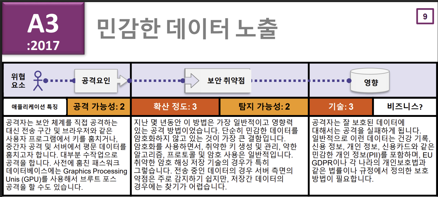 안녕하세요! 👋 디지털 시대의 정보 지킴이를 꿈꾸는 여러분, 오늘은 2017년 OWASP Top 10에서 세 번째로 위험한 취약점으로 지목된 A3: 민감한 데이터 노출(Sensitive Data Exposure)에 대해 이야기해 보겠습니다.