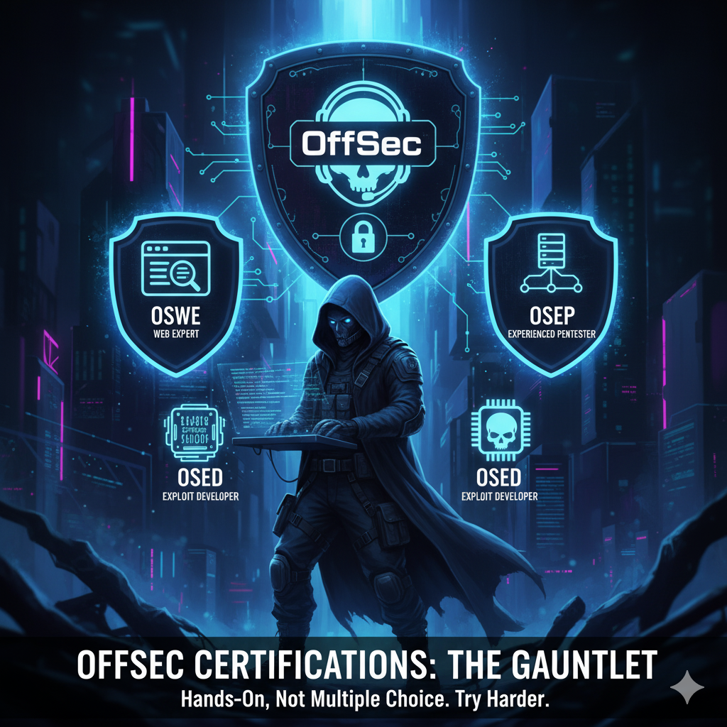 - OSED (OffSec Exploit Developer): (과정: EXP-301) Windows 환경의 취약점을 분석하고 직접 익스플로잇을 개발하는 능력을 평가하는 익스플로잇 개발 전문가 자격증입니다. 48시간 실기 시험으로 진행됩니다.