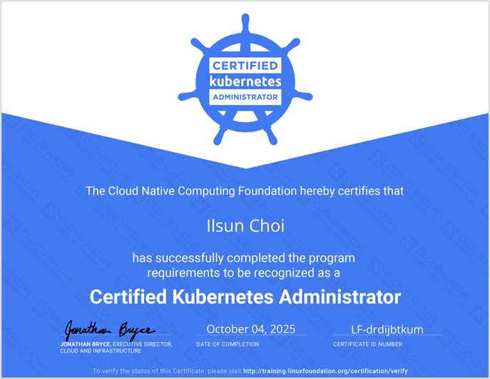 안녕하세요! 지난 CKAD 갱신 후기에 이어, '골든 쿠버스트로넛'을 향한 두 번째 여정, CKA(Certified Kubernetes Administrator) 자격증 갱신 후기를 들고 왔습니다.