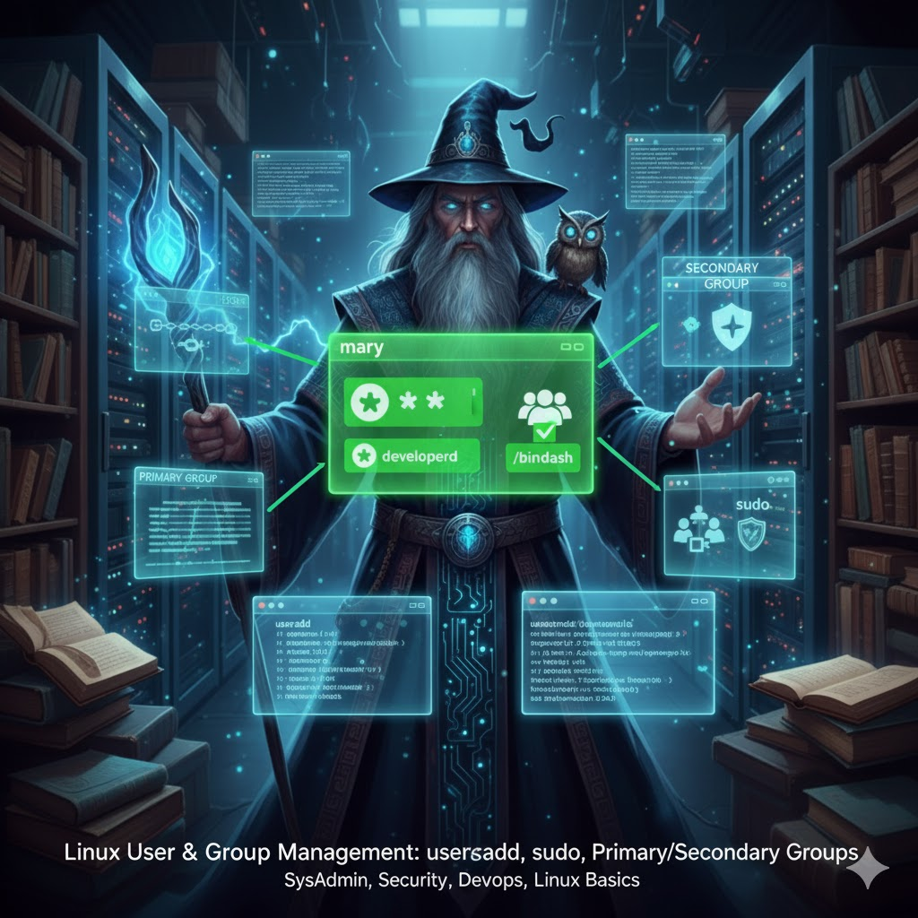 useradd, passwd, usermod, id 이 네 가지 명령어와 '주 그룹/보조 그룹'의 개념만 확실히 이해하고 있어도 리눅스 권한 관리의 절반은 마스터한 것이나 다름없습니다.