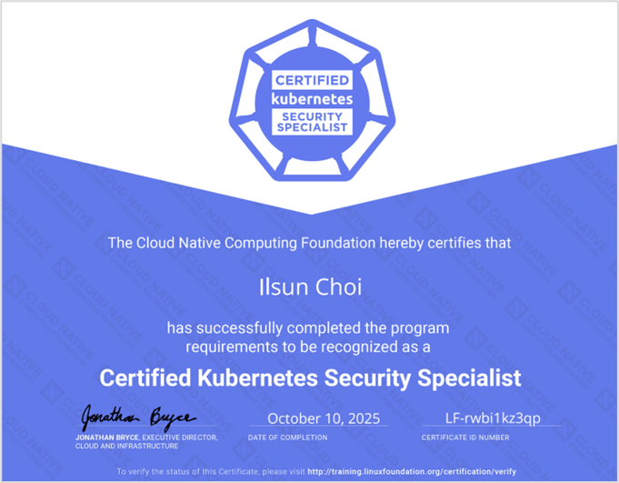 태그: CKS, Certified Kubernetes Security Specialist, Kubernetes, 쿠버스트로넛, Kubestronaut, 자격증 후기, CKS 후기, 쿠버네티스 자격증, CNCF, 클라우드 네이티브, 정보보안, 쿠버네티스 보안