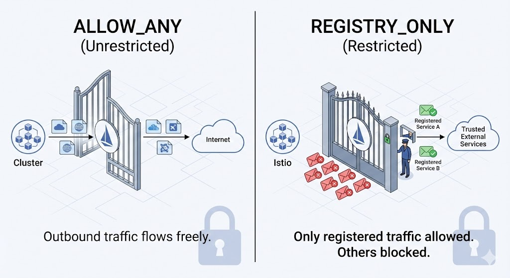 --set meshConfig.outboundTrafficPolicy.mode=REGISTRY_ONLY
