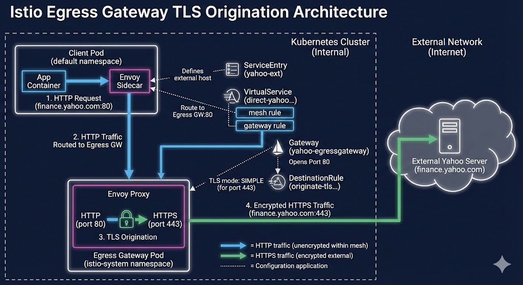 - 💡 요약: "Egress Gateway야, 80번으로 들어온 야후 트래픽은 실제 야후 주소의 443번 포트로 최종 전송해!" ↗️