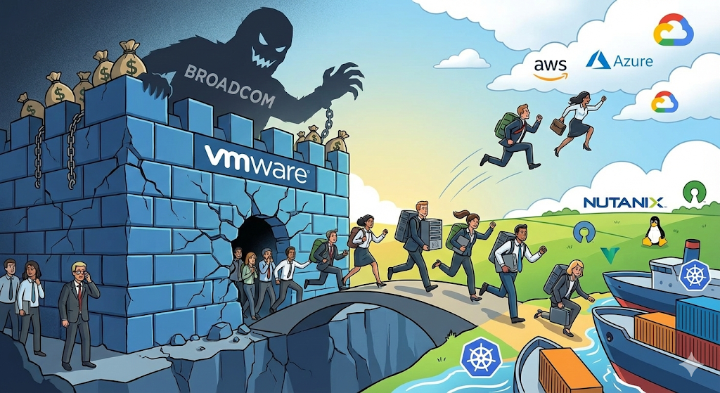 안녕하세요! IT 인프라 분야에서 가장 뜨거운 감자, 바로 'VMware 탈출 러시(The Great VMware Exodus)'에 대해 이야기해보려 합니다.