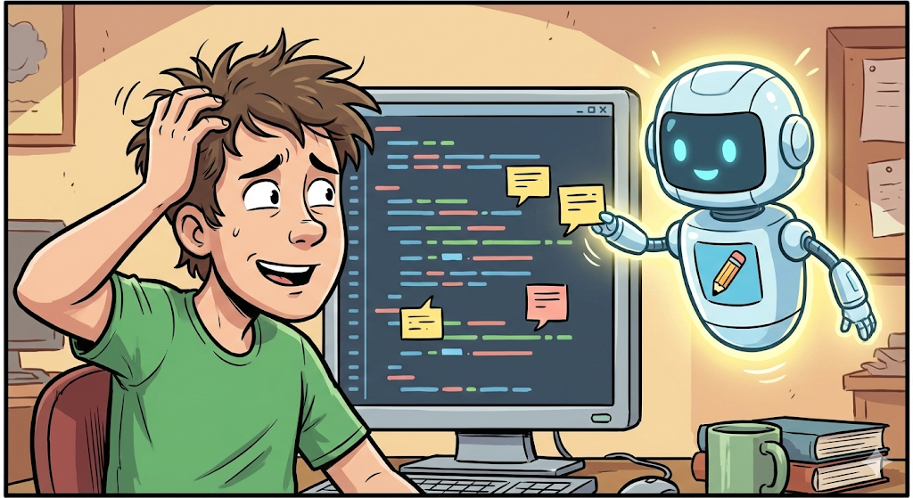 하지만 한 줄 한 줄 분석 내용을 주석으로 다는 건 정말 지루하고 시간 걸리는 일입니다. 이 귀찮은 일을 누구에게 맞기면 좋을까요? 네, 바로 우리의 지칠 줄 모르는 AI 조수입니다! 🤖