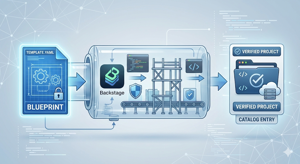 안녕하세요! 오늘은 플랫폼 엔지니어링의 핵심, Backstage 스캐폴더(Scaffolder)를 활용해 어떻게 "보안 가드레일이 포함된 표준 프로젝트"를 찍어낼 수 있는지 알아보겠습니다.