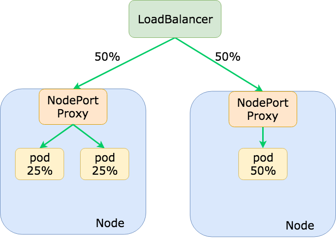 - 불균등한 트래픽 분산: 만약 Node A에 3개의 파드가 있고 Node B에 1개의 파드가 있다면, 외부 로드밸런서가 Node A와 Node B에 트래픽을 50:50으로 보낼 경우 Node B의 파드가 Node A의 파드들보다 3배 더 많은 트래픽을 받게 됩니다. 파드를 노드에 고르게 분산시키는 전략(예: podAntiAffinity)이 중요해집니다.