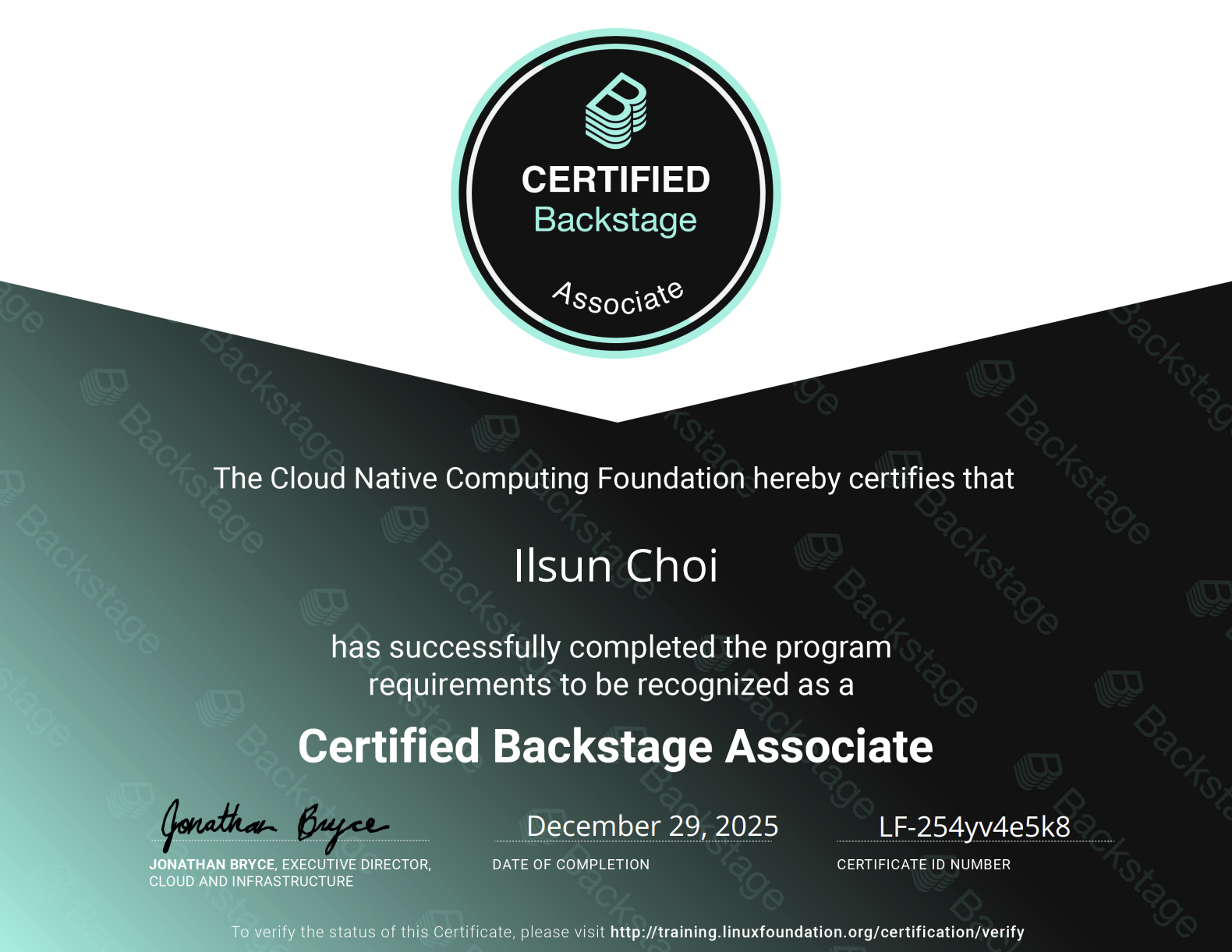 - 실습 우선: 단순히 덤프를 외우기보다 3일간의 집중 실습을 통해 'Backstage가 개발자 포털로서 어떻게 동작하는가'를 몸소 익힌 것이 90점이라는 고득점의 비결이었습니다.