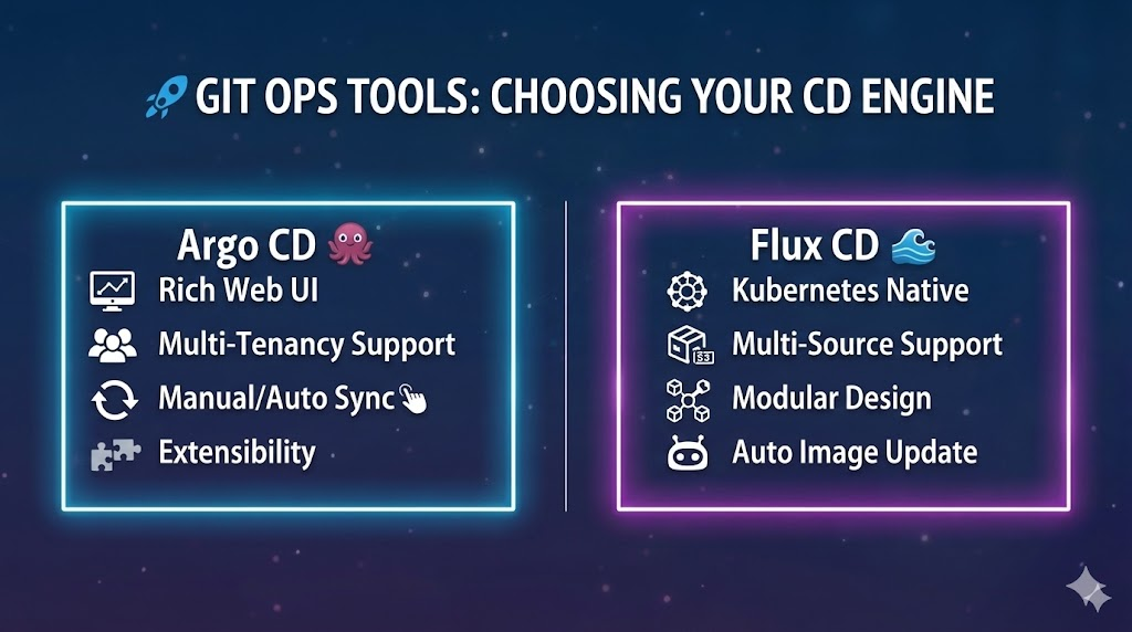 장 대표적인 두 주인공인 Argo CD와 Flux CD를 중심으로, 상황별 최적의 선택지를 10분 동안 상세히 비교해 드릴게요! 🚀