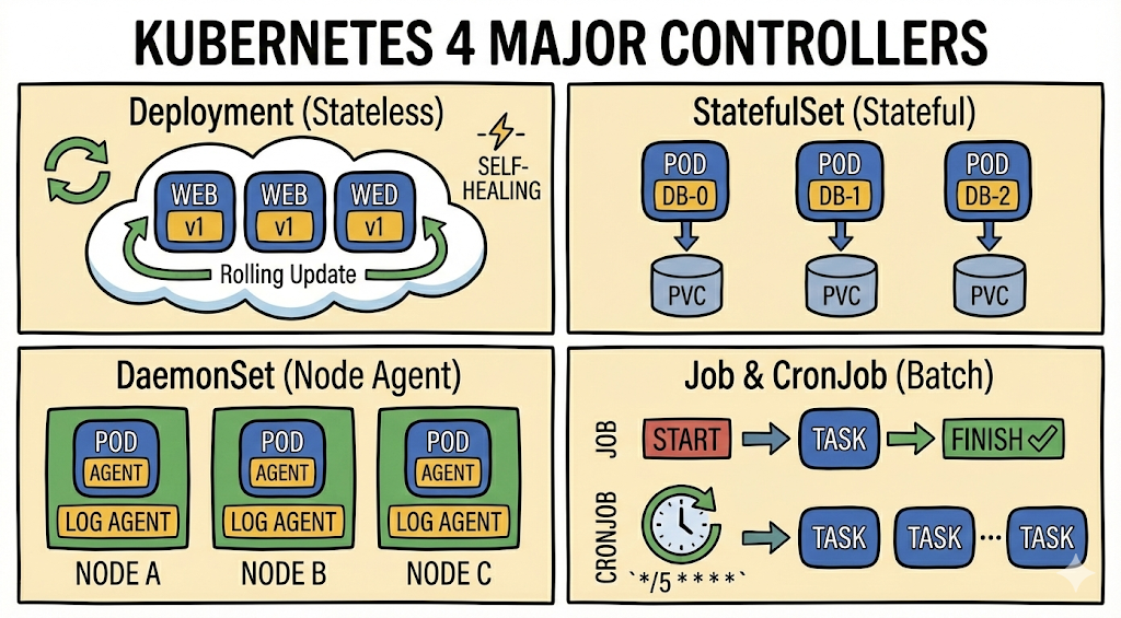 안녕하세요! '오늘은 쿠버네티스 워크로드 관리의 핵심인 4대 파드 컨트롤러를 완벽하게 정리해 드립니다.