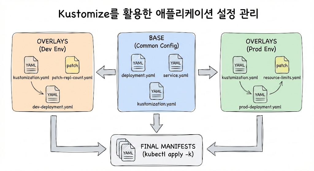 Kustomize를 이해하기 위해서는 Base와 Overlays의 관계를 파악하는 것이 중요합니다. 🏗️