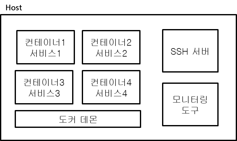 그런데 여기서 한 가지 중요한 질문이 생깁니다. "도커를 실행하는 서버는 어떻게 구성해야 가장 좋을까?" 그냥 OS 위에 도커 깔고, 기존 방식대로 다른 서비스들도 설치해서 같이 쓰면 안 될까요?